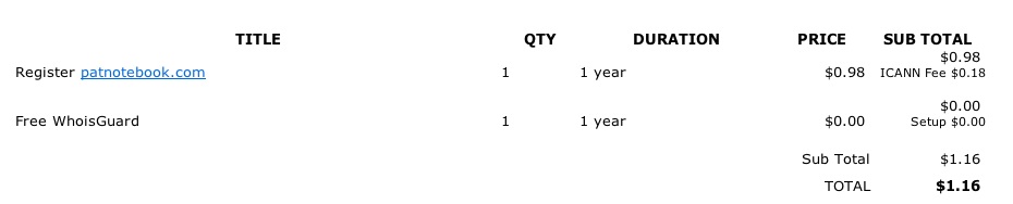 So in the end, it cost me $1.16 for a domain: